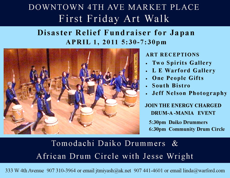 It will be an exciting event with the Daiko Drummers and the community drum circle with African drummer Jesse Wright. Bring your drum, tamborine, sticks,blocks or hands and join in the fun. There will be a Red Cross donation box there to collect disaster relief funds for Japan.